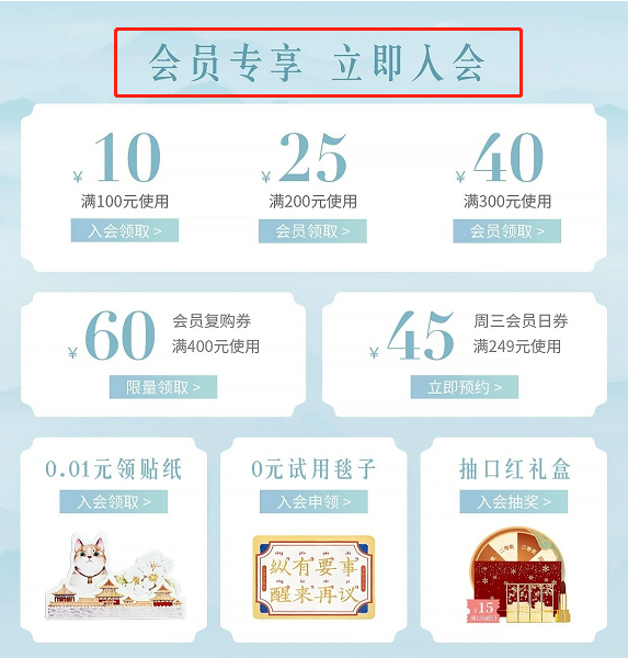 除此之外,瑾栩也加強(qiáng)了視覺觸點(diǎn),引導(dǎo)消費(fèi)者入會(huì)加深流量?jī)r(jià)值。強(qiáng)化品牌IP特點(diǎn),利用和競(jìng)品與眾不同的風(fēng)格,增加消費(fèi)者對(duì)品牌IP的印象。