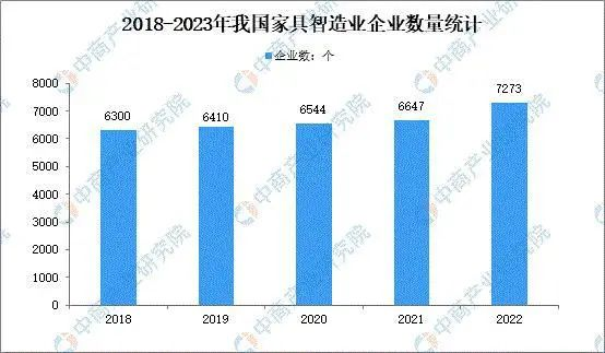 數(shù)據(jù)顯示,2022年家具制造業(yè)企業(yè)數(shù)量達(dá)7273個(gè),同比增長9.42%,較去年增長了626家。