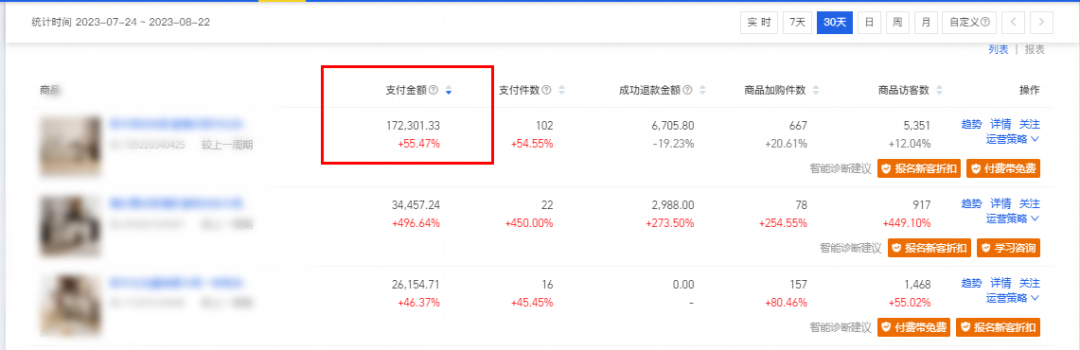 “因?yàn)橹饕顿M(fèi)廣告流量,獲客成本高。針對這點(diǎn),我對店鋪開啟全面引流,直通車+引力魔方,付費(fèi)流量達(dá)到高點(diǎn);店鋪獲客成本高,開始調(diào)整流量結(jié)構(gòu),完善產(chǎn)品主圖微詳情視頻,拍攝3D樣板圖,通過站內(nèi)逛逛訂閱等渠道大幅拉升免費(fèi)推薦流量,一度超過付費(fèi)流量,免費(fèi)流量轉(zhuǎn)化成交占比達(dá)到30%。”