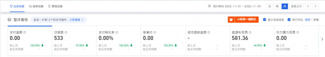 2.店鋪新店沒有訪客,流量結(jié)構(gòu)不合理,主要付費(fèi)廣告流量,獲客成本高;