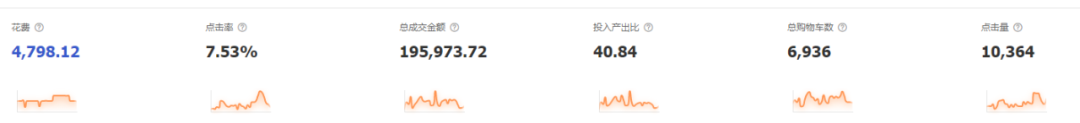 “整體計劃投產(chǎn)30天時間,投入產(chǎn)出比達到40.84,通過標(biāo)準(zhǔn)計劃提升搜索權(quán)重,用智能計劃完成收割的方式,帶動店鋪整體銷量的提升。”