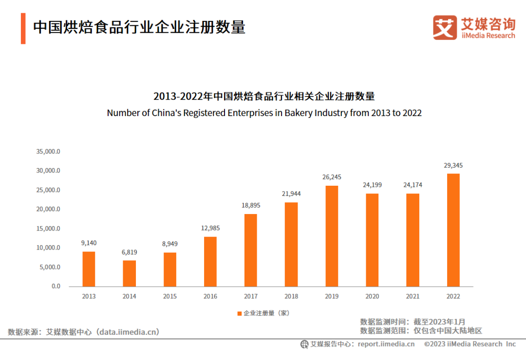 中國烘焙食品行業(yè)企業(yè)注冊數(shù)量,數(shù)據(jù)來源:艾媒數(shù)據(jù)中心