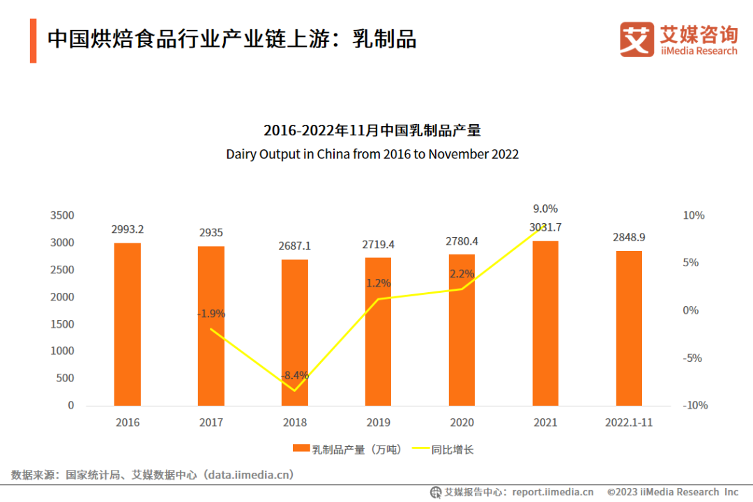 中國烘焙食品行業(yè)產(chǎn)業(yè)鏈上游:乳制品,數(shù)據(jù)來源:艾媒數(shù)據(jù)中心