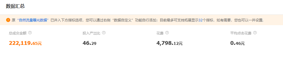 “整體計劃投產(chǎn)30天時間,投入產(chǎn)出比達(dá)到40.84,通過標(biāo)準(zhǔn)計劃提升搜索權(quán)重,用智能計劃完成收割的方式,帶動店鋪整體銷量的提升。”