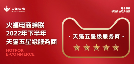近日,2022年下半年淘寶天貓生態企業評級評優榜單正式發布,火蝠電商憑借專業的精細化運營服務能力與優質的數字化經營能力,再次榮獲綜合服務商星級榜五星級服務商。