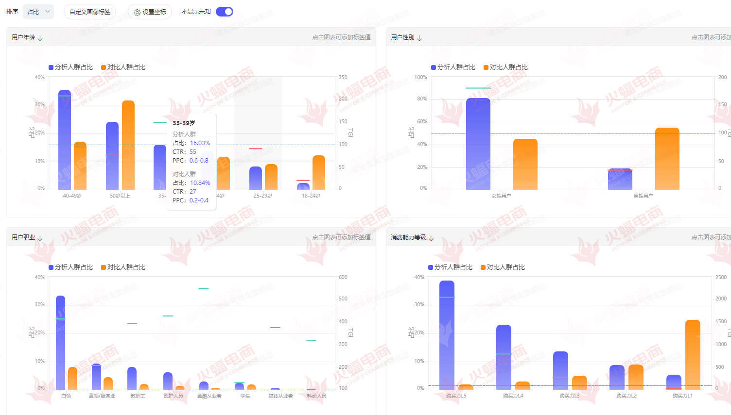 “性別不同,年齡不同,職業(yè)不同,對于珠寶的理解和需求自然不一樣,但只要找對了人,店鋪就成功了一半。”“從四五十歲到三十多歲,珠寶消費的主力正在逐漸年輕化。未來,我們需要逐步挖掘30歲左右更年輕的白領(lǐng)女性。這類人消費能力強(qiáng),對珠寶有著較高程度的認(rèn)知,更愿意為‘悅己’而買單。”新俠(花名)還提到,“關(guān)注珠寶的女性,同樣會對美妝、服裝、家居等消費領(lǐng)域有著極強(qiáng)的興趣。”運營團(tuán)隊依托于大數(shù)據(jù),充分理解白領(lǐng)人群畫像后,在付費投放策略上作出相應(yīng)調(diào)整,前期以珠寶人群為主,后期范圍可朝著美妝和服裝等類目擴(kuò)散,層層破圈,獲得更多人群。