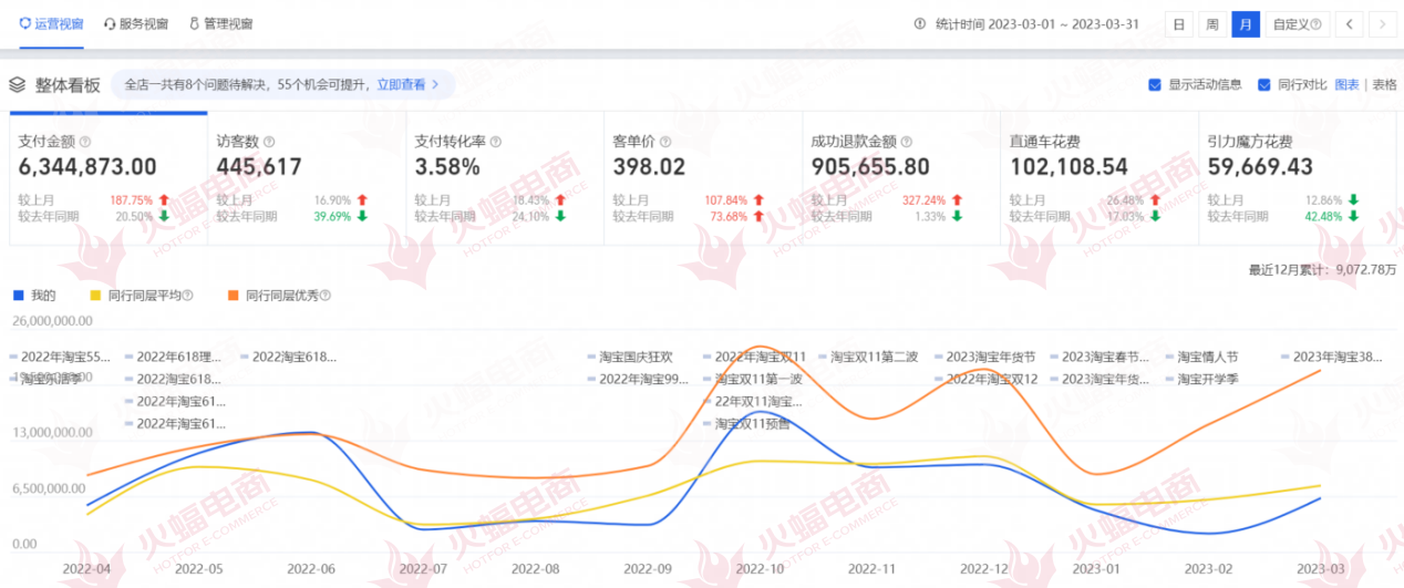 根據Early Data發布報告顯示,2022年保健滋補電商銷售額達835億元,同比增長34%。面對多變的消費者與嚴格的監管要求,品牌為何依然能夠取得強勁增長?背后的品牌服務商提供強大助力,作為鏈接平臺-品牌-消費者之間的關鍵環節,有效幫助企業控制經營成本與風險,節省大量資金與人力資源。經過驗證,保健品電商代運營模式因其獨特優勢受到品牌方高度認可,需求不斷高漲。憑借9年的代運營服務經驗,武漢火蝠電子商務有限公司(以下簡稱「火蝠電商」)在行業中享有較高知名度,為迎接國民健康消費機遇,今年3月份與保健滋補品牌商家展開合作,將店鋪提升至傳統滋補營養品行業第五,月銷售額突破630萬。