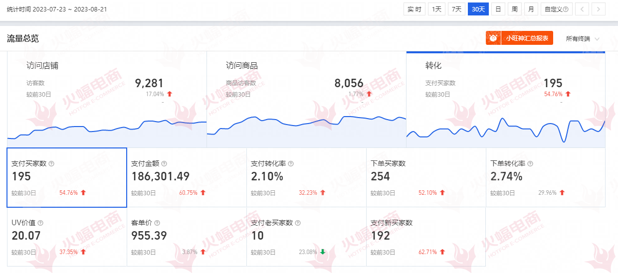 據悉,該服務商與阿里、京東、拼多多等平臺均有合作,長年擁有一線資源,始終堅持以「客戶增長」為導向,用實際運營成績說話。在本次與地磅店鋪商家的合作中,成功幫助品牌主店鋪銷售額30天提升30%,支付金額上升72%,支付新賣家增加62.7%,流量提升17%,在品牌主持續取得增量的同時,火蝠電商作為服務方,也不斷從過程中汲取經驗,快速反應市場需求及消費趨勢變化,凝練「地磅」小眾品類經營玩法,鞏固競爭優勢。