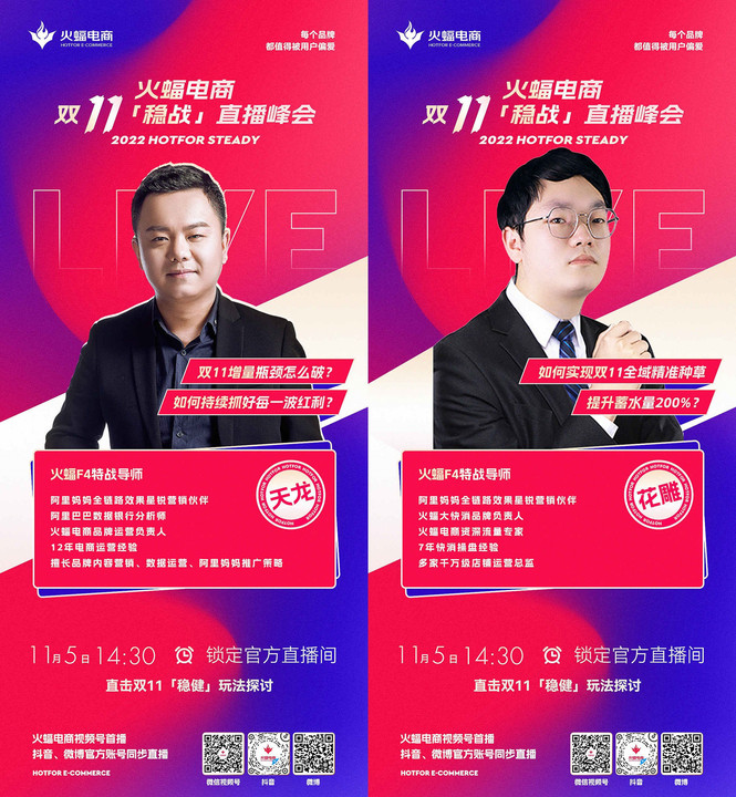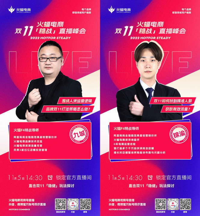 11月5日14:30,敬請(qǐng)關(guān)注火蝠電商視頻號(hào),與特戰(zhàn)導(dǎo)師們一起「穩(wěn)戰(zhàn)」雙十一。