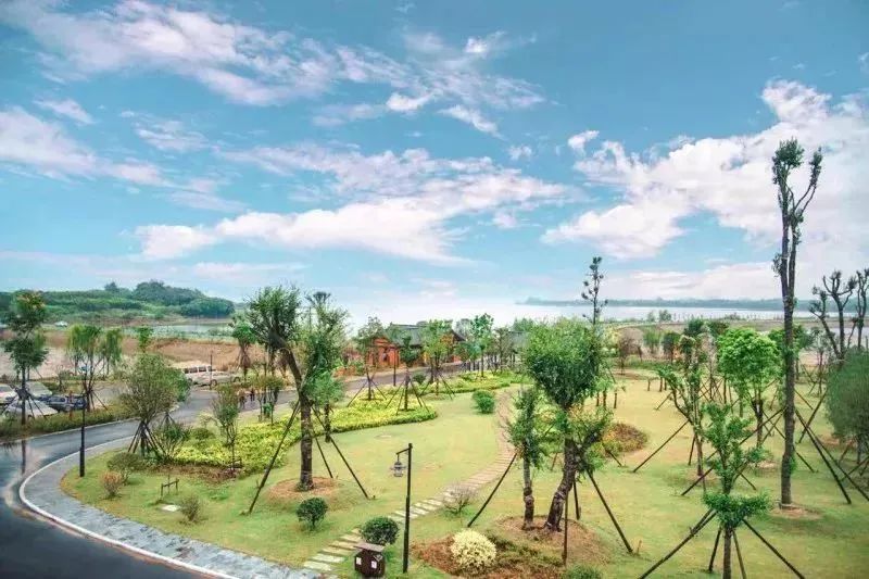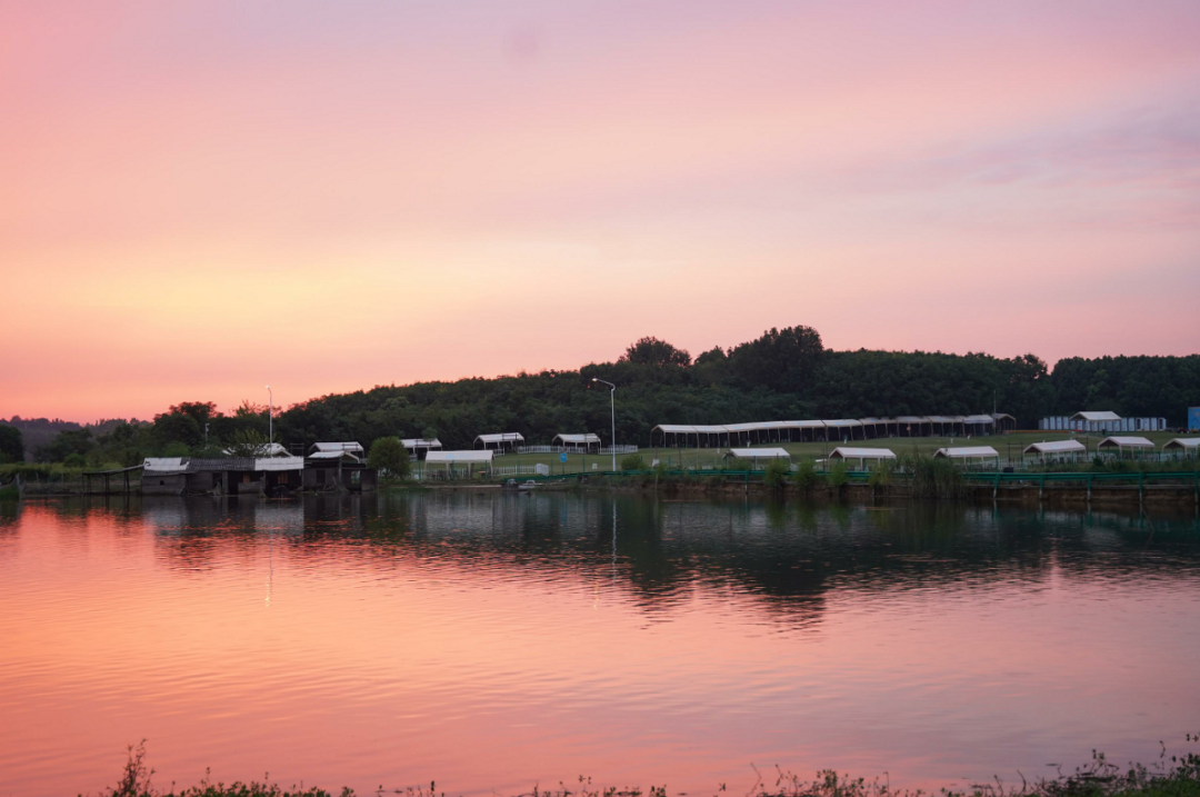 “采菊東籬下,悠然見南山”,湖水、微山、果園、樹木、草、風、花、夕陽、飛鳥、鳴蟲、竹籬、小木屋.……還有當日偶遇的像棉花糖一樣飄蕩的云朵和靜謐的藍天,仿佛就是陶淵明筆下的夢想境地。